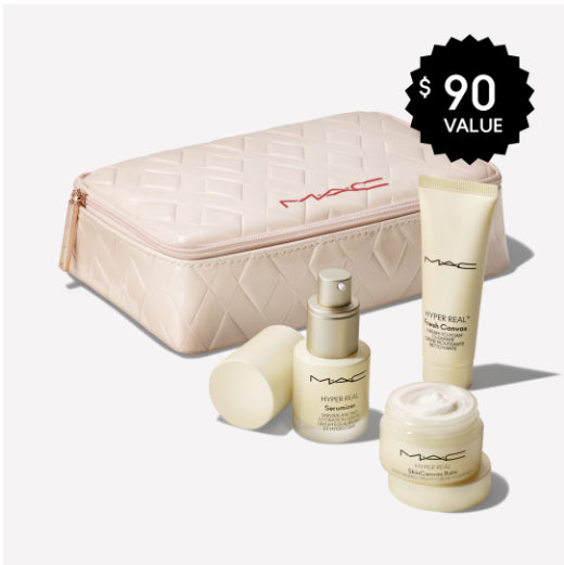 For the friend who stays out all night…or the mother-in-law who wants eyes to look tight and bright. Give a gift that shows you care (about their skin!) with Hyper Real™. This limited-edition set features our ultimate radiant, hydrating and smoothing power trio that achieves bright, luminous eyes and healthy-looking skin. This must-have complexion kit will have skin prepped and ready for makeup with full-sized Hyper Real Serumizer™ Skin Balancing Hydration Serum and Hyper Real SerumizerTM Eye 360° Bright Eye Treatment, plus our 360° Cooling Eye Applicator. Ready to gift in a holiday-exclusive, quilted pink makeup bag at a M·A·Cnificent value.