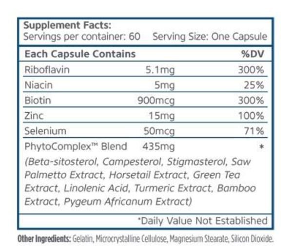 Our herbal supplement promotes the growth of healthy hair by boosting vitamin deficiencies that are essential for hair regrowth. It also provides you with essential nutrients that your hair craves to grow thicker and Healthier, including 100 mg of pure Sitosterol, Zinc, Biotin, Niacin, Selenium, Saw Palmetto Extract, Horsetail Extract, Green Tea, Linolenic Acid, Turmeric Extract, Bamboo extract. Pygeum Africanum and more, with NO SEXUAL SIDE-EFFECTS. Fight your battle with hair loss naturally with a hair health herbal supplement.